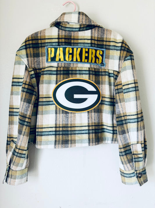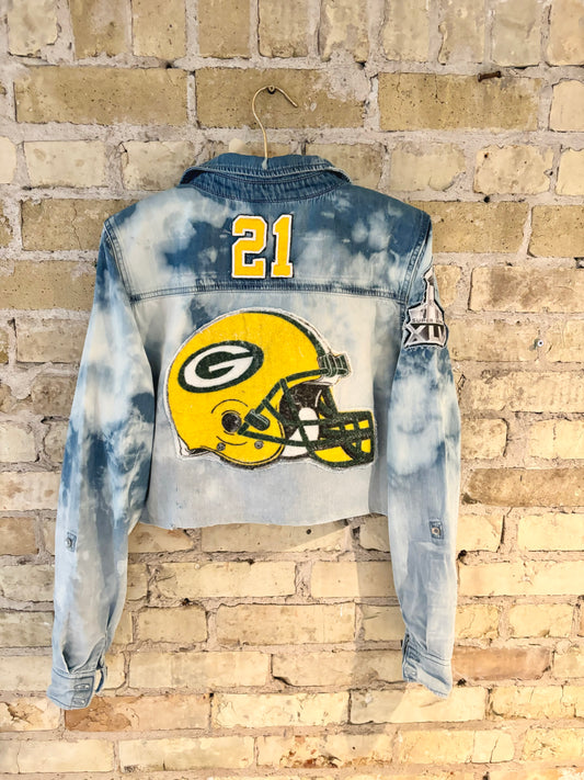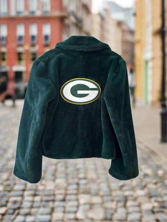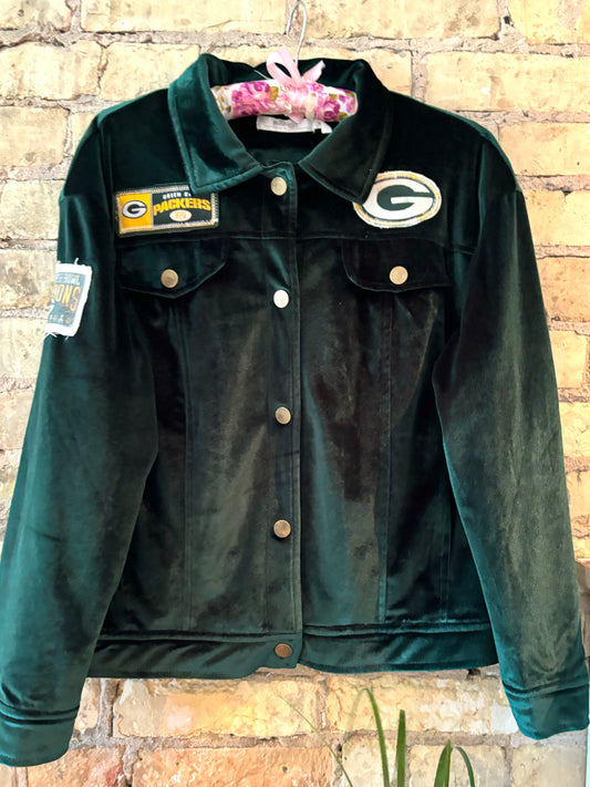 Reworked EmeraldGreen Plush Velvet Packers Game Day Jacket