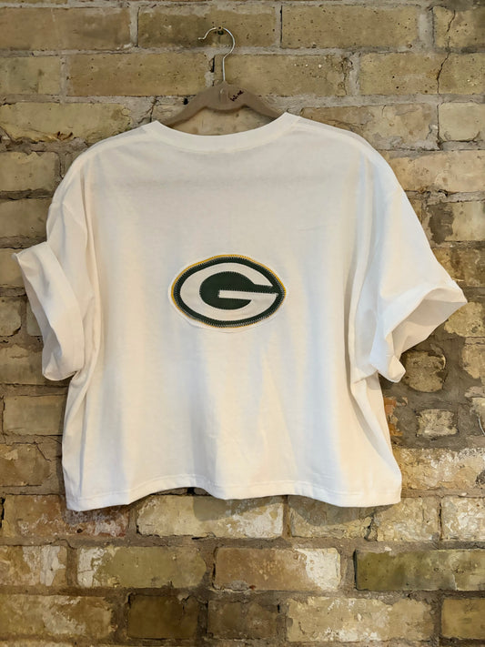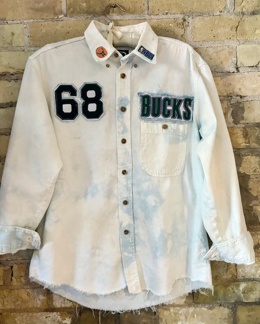 Reworked Game Day cropped distressed Denim Jean Shirt