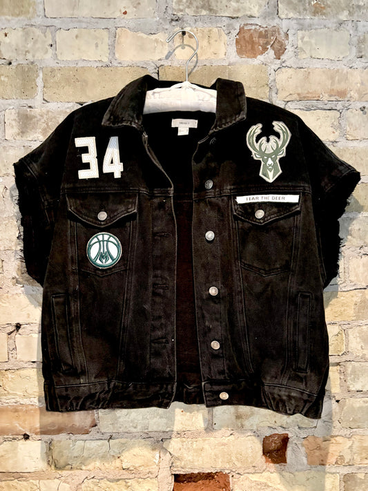 Reworked oversized BUCKS Game Day Denim Jean Vest
