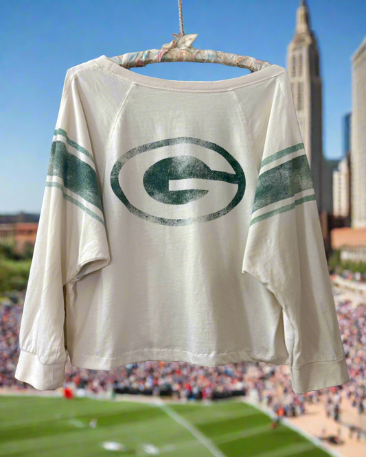 Reworked Packers cropped Throwback Shoulder Jersey Tee