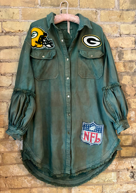 Reworked Packers 90’s Retro Game Day Denim Jean Shirt