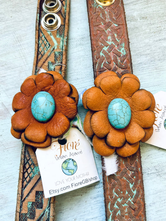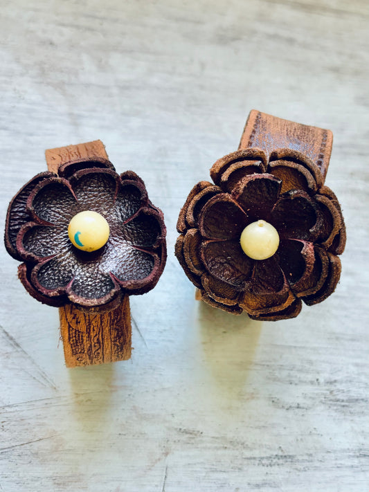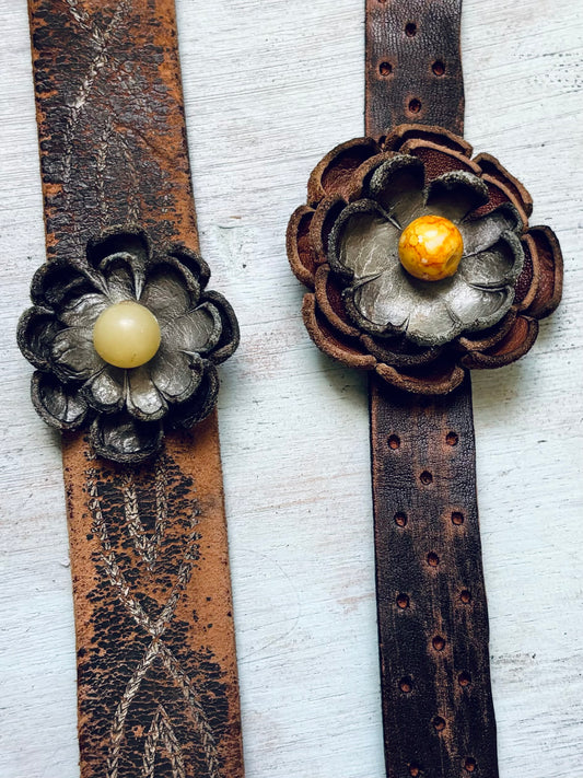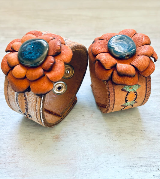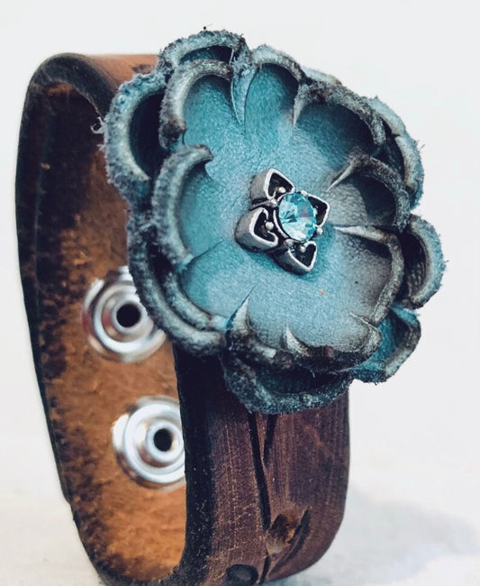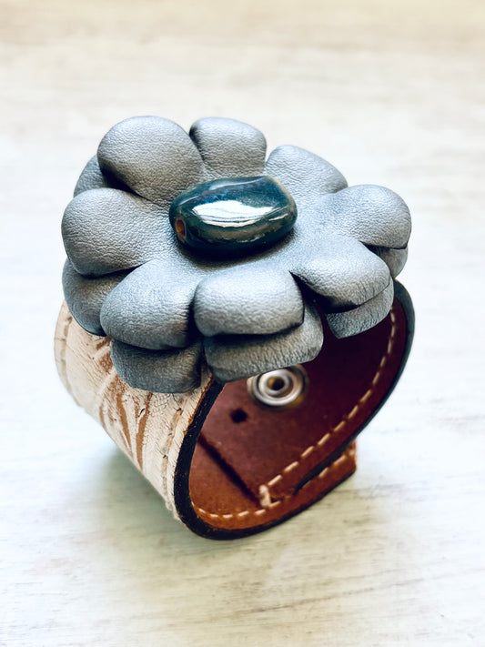 Hand Tooled Reclaimed Leather Flower Bracelet