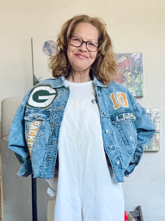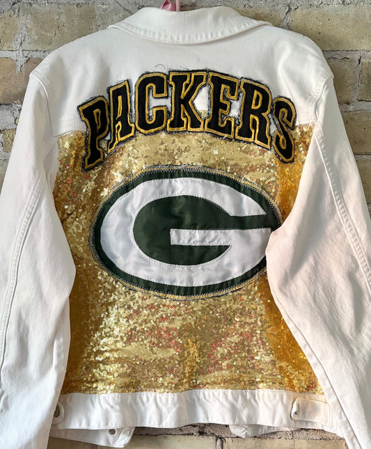 Reworked Packers Stretch Denim Game Day Sequins Jacket