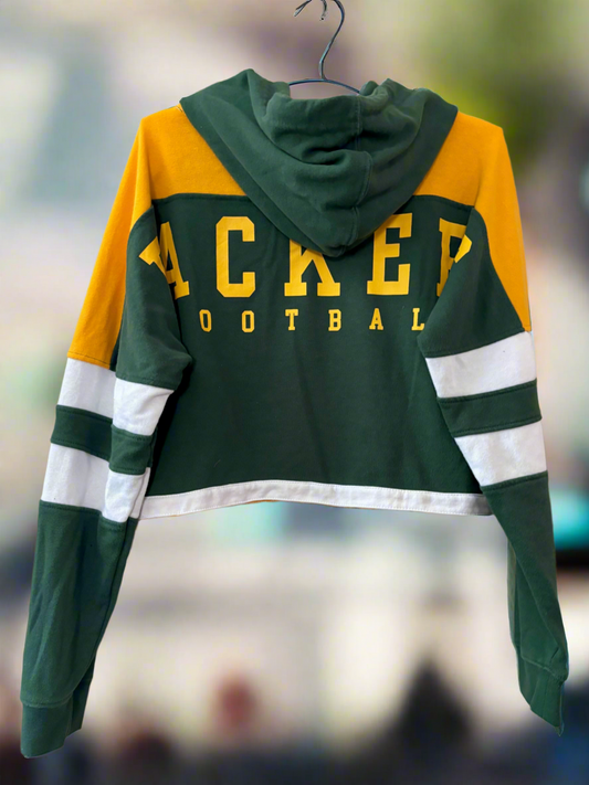 Reworked Packers Y2K Crop Top Hooded Sweatshirt