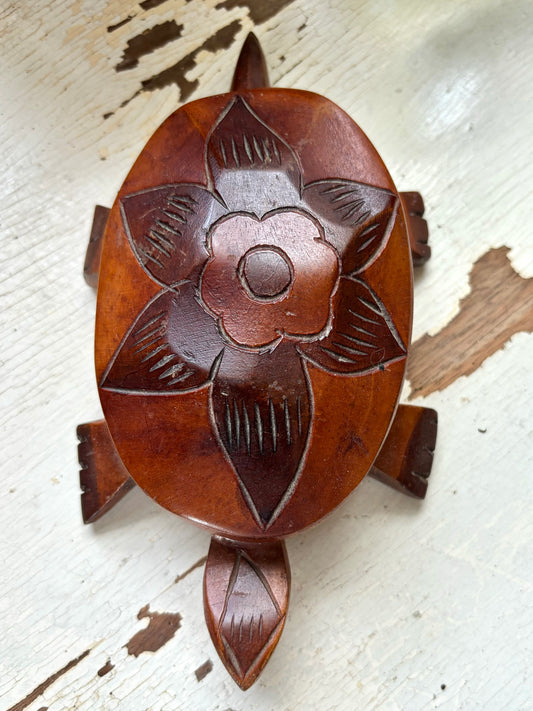 Vintage Hand Carved Wooden Sea Turtle Lotus Flower Trinket Dish with Cover LIMOGES FRANCE Collectable Iris floral trinket dish Tray