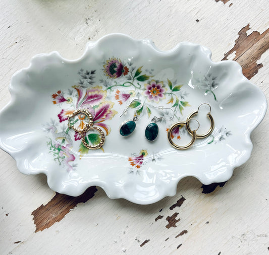 Vintage LIMOGES FRANCE Collectable Iris floral trinket dish Tray