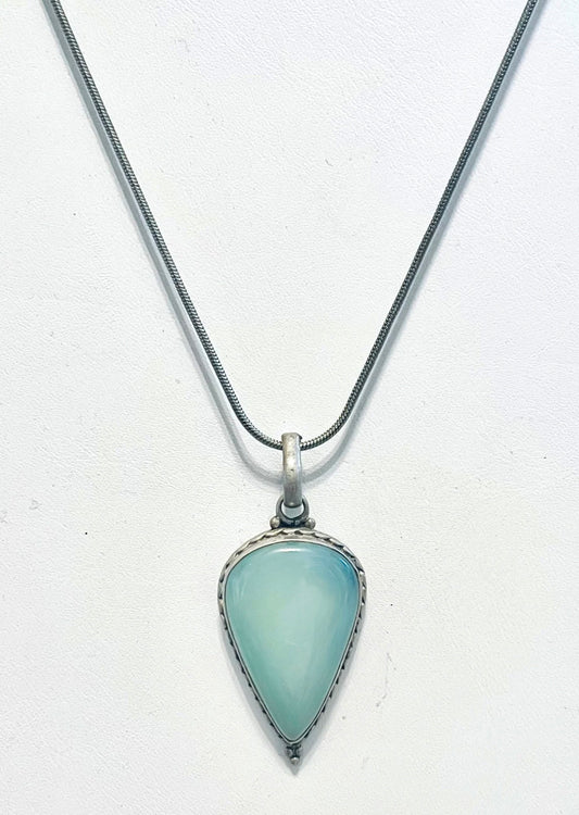 Vintage Sterling Silver Chalcedony stone Pendant Necklace
