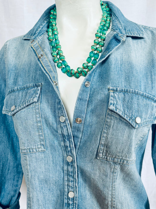 Vintage Turquoise & Gold double Strand beaded Necklace