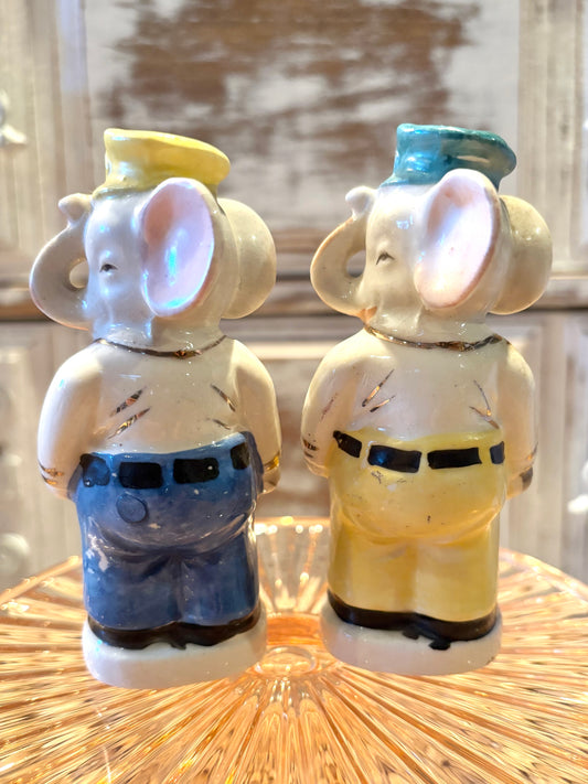 Vintage Rare Police Elephants Trunk up Salt & Pepper Shaker set