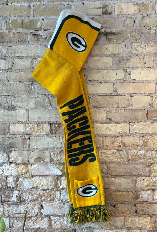 Vintage Rare NFL PACKERS winter scarf with Helmet Hoodie & Pockets & Fringe