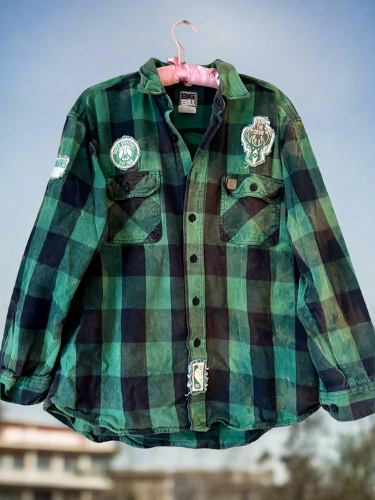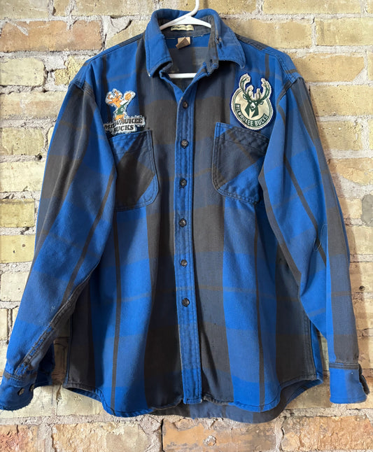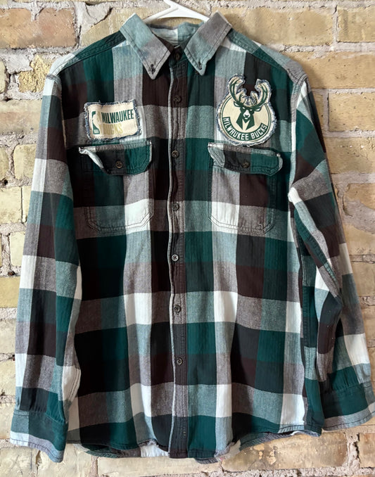 Reworked Bucks Distressed Game Day Flannel Shirt