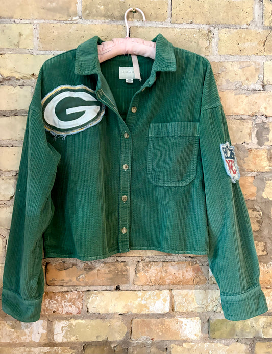 Reworked Cropped Corduroy Packers Game Day Jacket