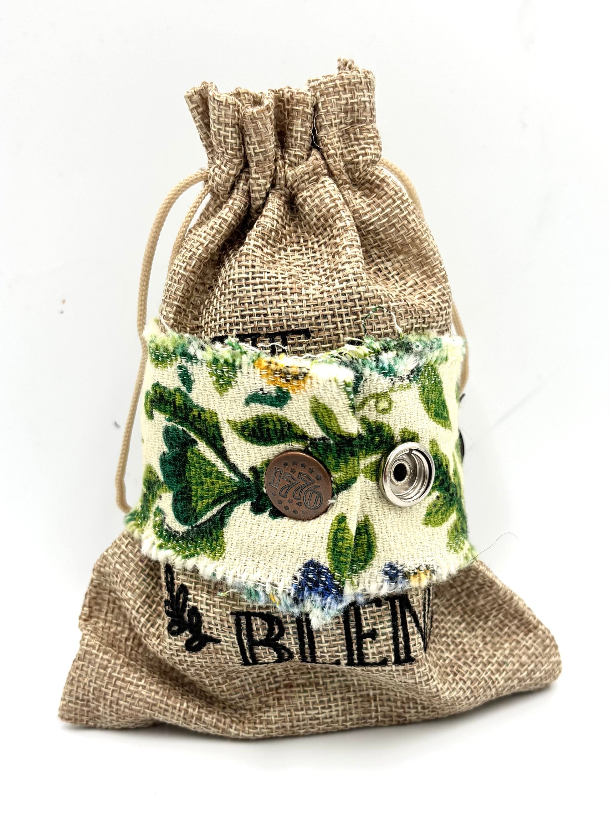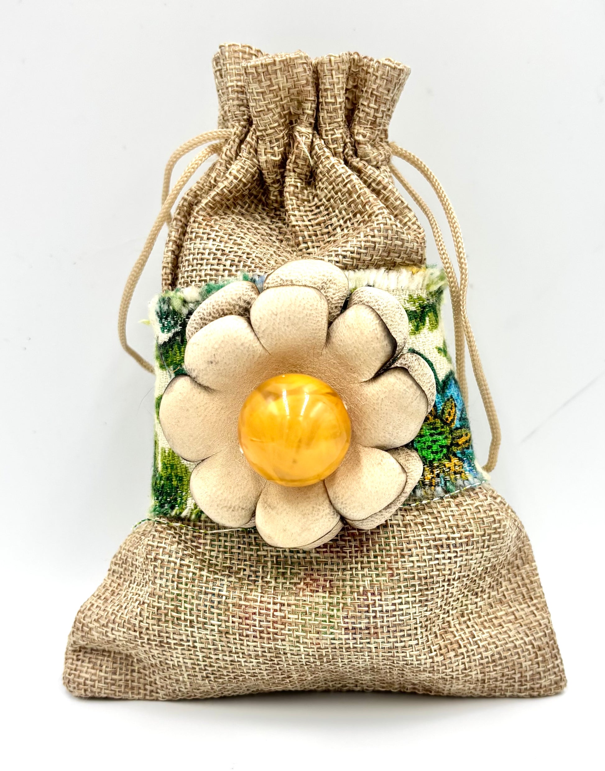 Vintage 70’s floral upholstery was used for the band making this comfortable to wear with a sweet expression of style.