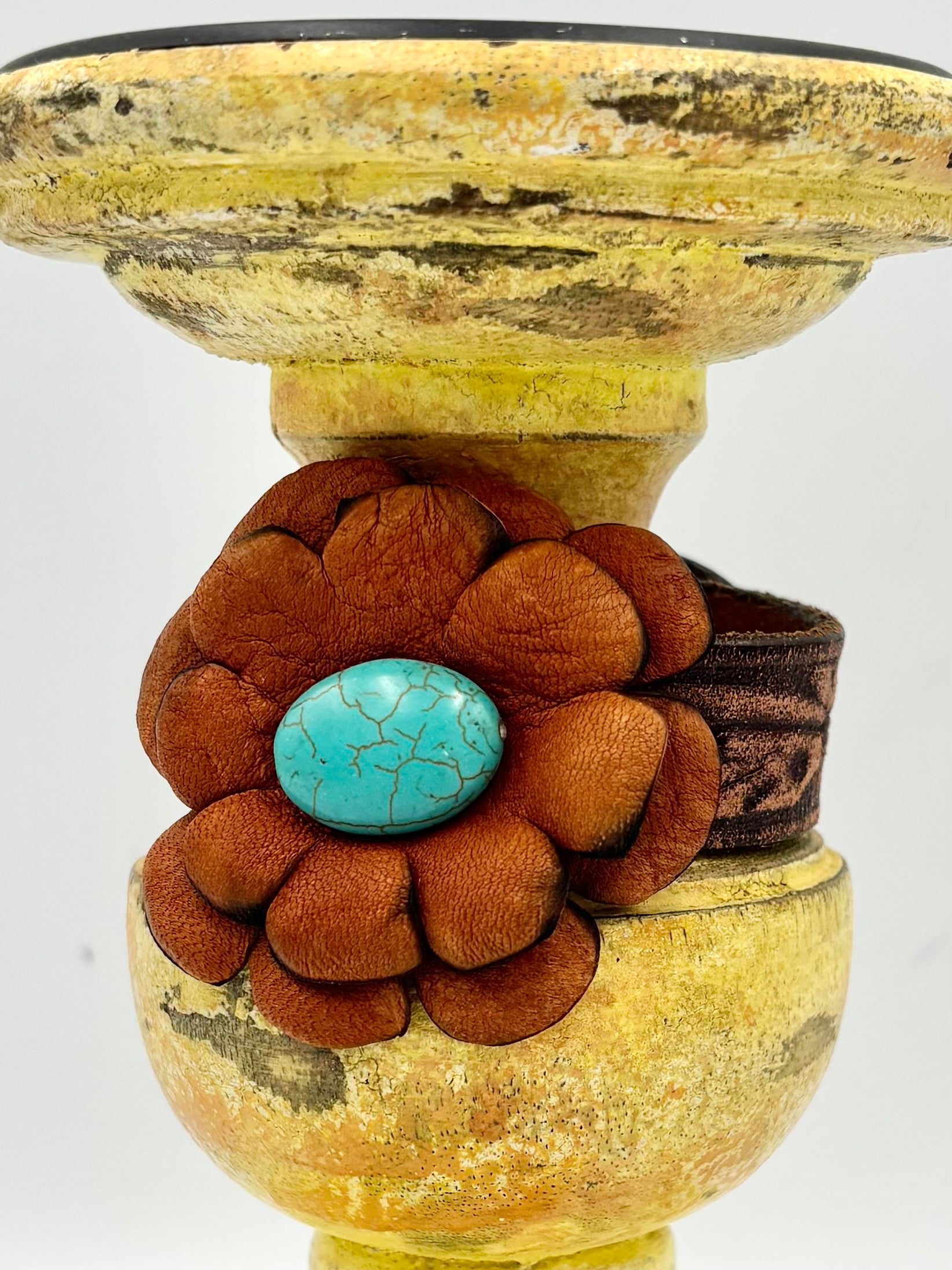 The leather used for the band is perfectly worn and distressed making this a comfortable wear with a sweet expression to wear everyday or for special occasions.