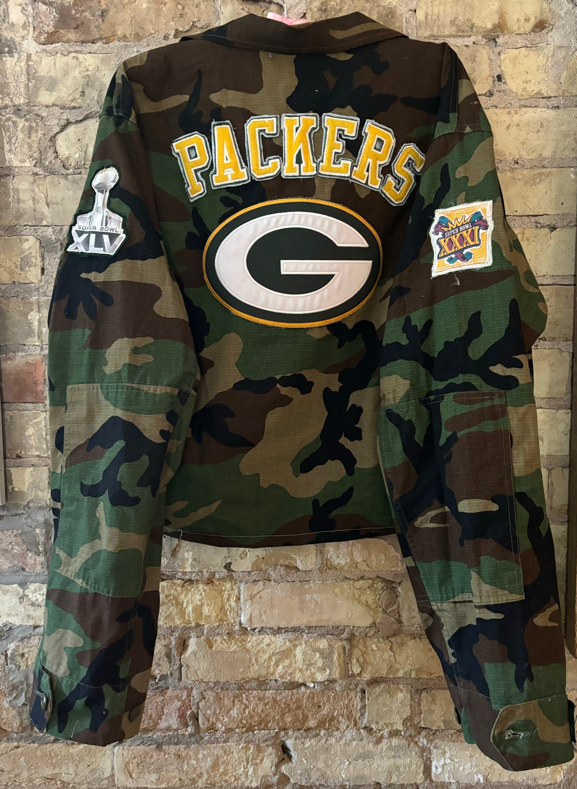 Reworked vintage Camouflage Packers Game Day Coat Jacket