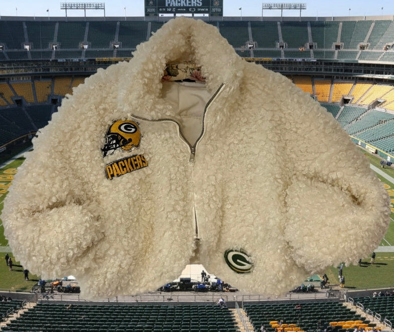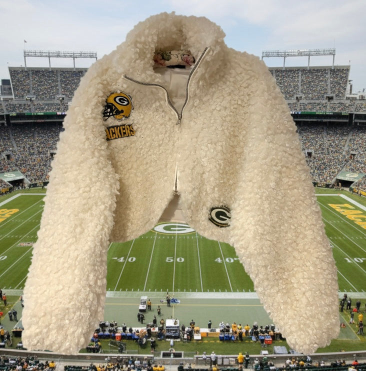 Reworked cropped Curly Faux Fur Jacket Coat