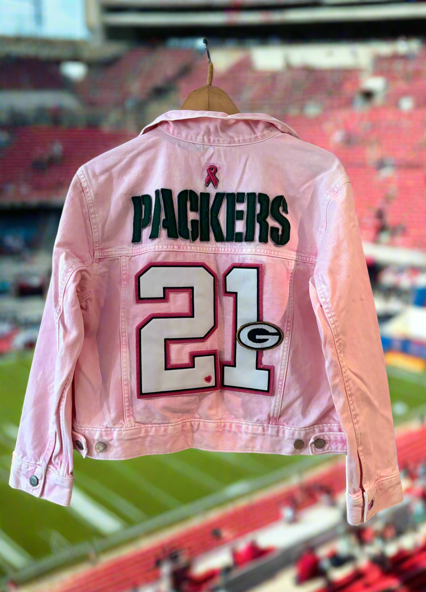 Reworked overdyed Retro Game Day Breast Cancer Awareness Denim Jean Jacket