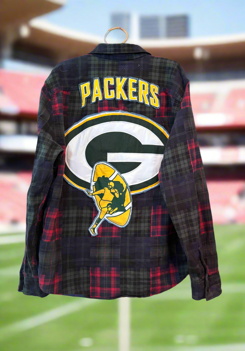 Reworked Men’s button up patchwork plaid Flannel Shirt