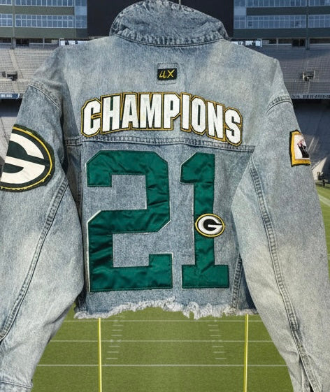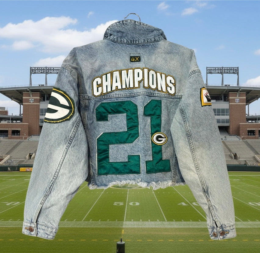 Upcycled Green Bay Packers apparel and fan wear patchwork