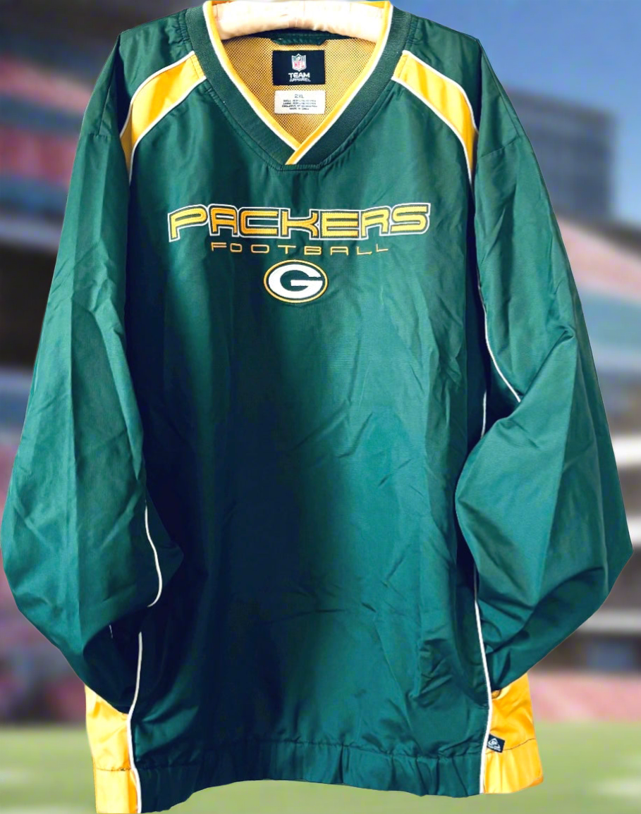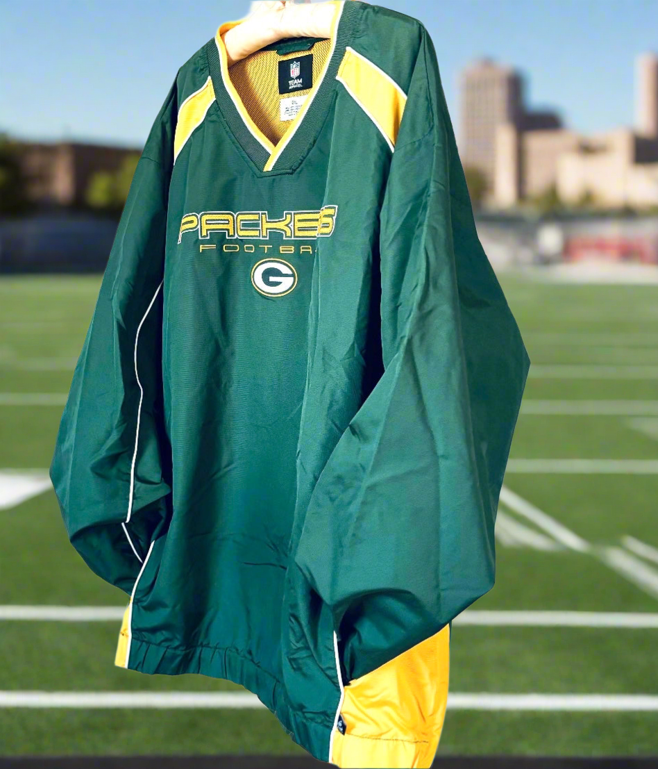 Vintage Green Bay Packers Color Block V Neck Windbreaker Pullover